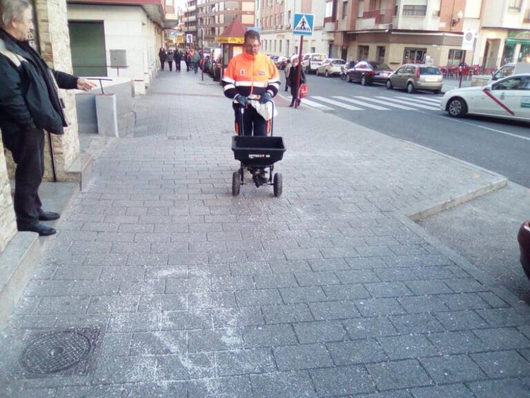 Operarios municipales han esparcido sal todo el sábado para prevenir de posibles caídas por las placas de hielo