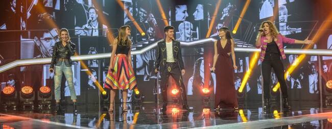 Ana Guerra, Amaia Romero, Alfred Garcia, Aitana Ocana and Miriam Rodriguez perform on stage for Operacion Triunfo Eurovision contest on January 29, 2018 in Barcelona, Spain. / Robert Marquardt (Getty Images)