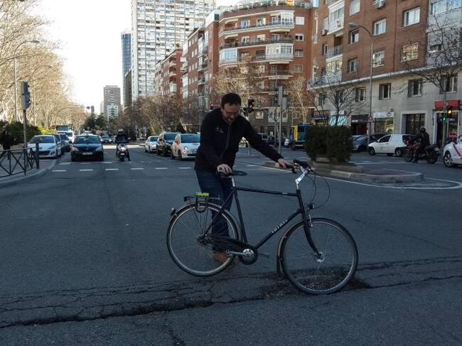 José Luis Jiménez, miembro de Madrid Ciclista, nos ha llevado a uno de los puntos más conflictivos con un llamativo agujero en la calzada, a la altura del número 14 de la Avenida General Perón, pero reconoce que entre los barrios más conflictivos se encuentra Lavapiés: "Es una pena que en una zona APR (Área de Prioridad Residencial), por tanto con menos tráfico, el pavimento sea de adoquines. Suelen levantarse por el uso y se hace peligroso circular", explica.