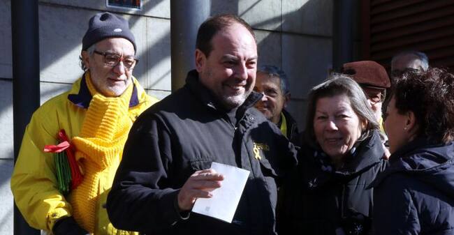 Més d'un centenar de persones han donat suport a Perelló des de primera hora del matí i l'han rebut amb crits i aplaudiments en sortir, un dels quals "Els tallers seran sempre nostres".