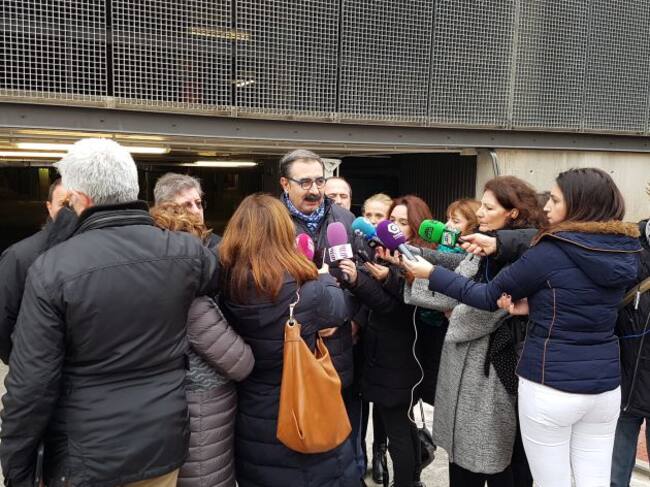 El consejero de sanidad comparece ante los medios en la puerta del aparcamiento/Foto SER GU
