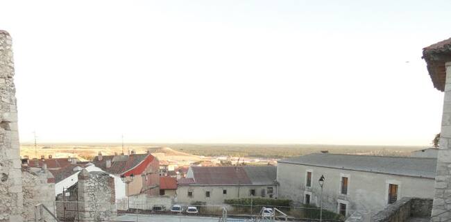 Vehículos estacionados en el aparcamiento cercano al Centro de Salud de Cuéllar en una vista desde la necrópolis de San Esteban.