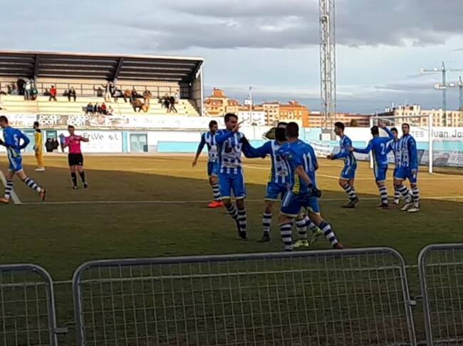 Los blanquiazules celebran el tanto de la victoria de Adeva. / Cadena SER