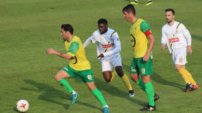 El delantero se ha quejado de la cara... y junto cuando ha vuelto al campo ha rematado de cabeza el que ha sido 1-0 tras un córner botado por Pirulo. Poco después, el propio 10 barreño ha podido hacer el 2-0 en un espectacular remate de cabeza a centro de Biri.
