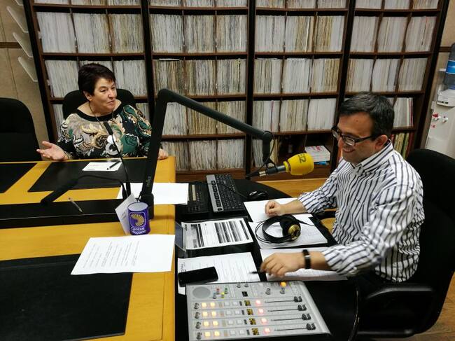La alcaldesa Clara Luquero esta mañana en los estudios de Radio Segovia / RADIO SEGOVIA