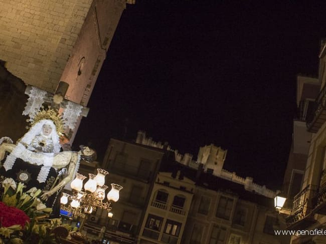 La imagen de la Dolorosa saliendo de su sede / Ayuntamiento Peñafiel