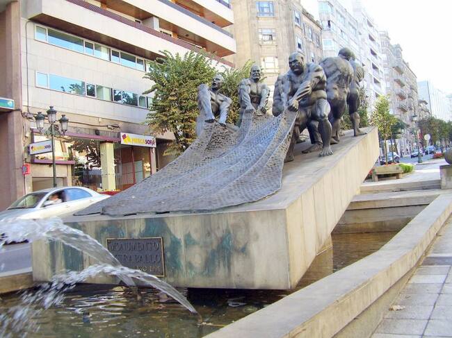 Estatua de los Rederos en su actual ubicación de Gran Vía / Turismo Rías Baixas