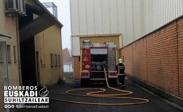 Dos trabajadores han sido evacuados al hospital de Santiago por la inhalación de humo en un incendio registrado esta mañana en una empresa del poligono industrial de Gamarra en Vitoria.