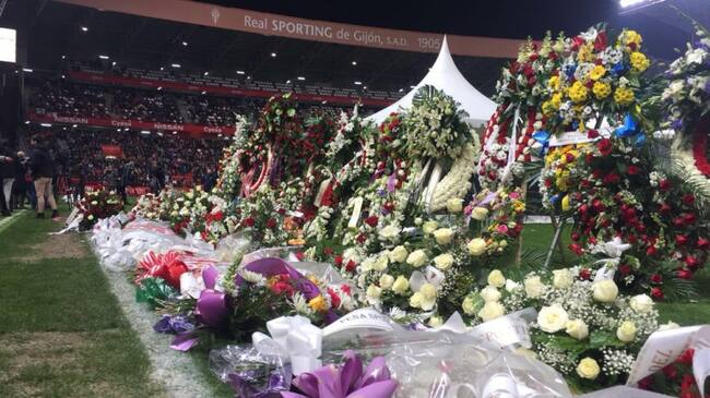 Enrique Castro 'Quini' ha sido despedido en el estadio que desde este miércoles lleva su nombre por unas 14.000 personas. Un adiós que se comenzó a vivir desde el mediodía, cuando la capilla ardiente comenzó a registrar un goteo de visitas al féretro del exjugador del R.Sporting, F.C. Barcelona y la Selección Española que no cesaron hasta el comienzo de la misa oficiada por el capellán rojiblanco Fernando Fueyo.