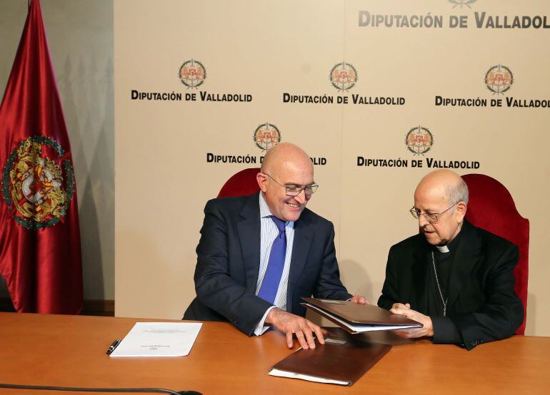 El presidente de la Diputación y el arzobispo de Valladolid, Ricardo Blázquez han renovado el convenio que se inició en 1994 y que dese entonces ha permitido más de 1.192 actuaciones.