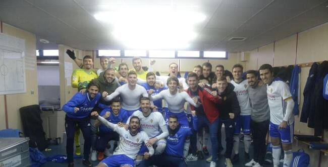Los jugadores del Real Zaragoza celebran la victoria en el vestuario / Real Zaragoza