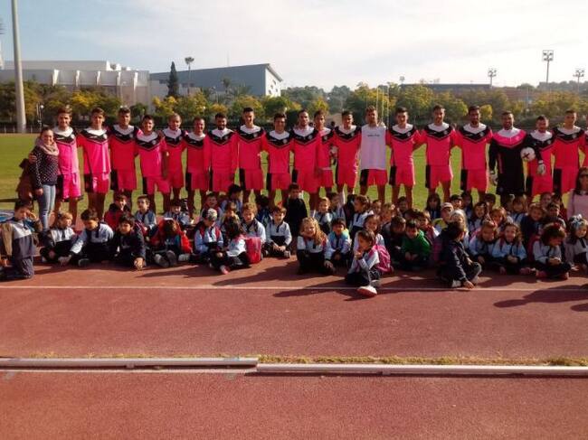 La plantilla del Hércules CF posa con los niños / Hércules CF