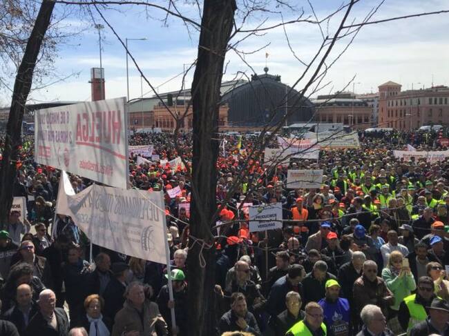Cerca de 50.000 personas, según datos de la organización, se han manifestado hoy en Madrid para pedir soluciones ante la falta de agua y la sequía estructural que padecen los regantes de Alicante, Almería y Murcia y que está mermando sus producciones.