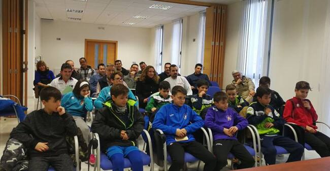 Los integrantes de la selección alevín de fútbol sala de Jaén en una reunión informativa en la Federación Jiennense de Fútbol. / Federación Jiennense de Fútbol