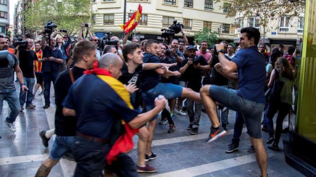 Un joven se defiende de varios miembros de la ultraderecha en la manifestación del pasado 9 de octubre / EFE