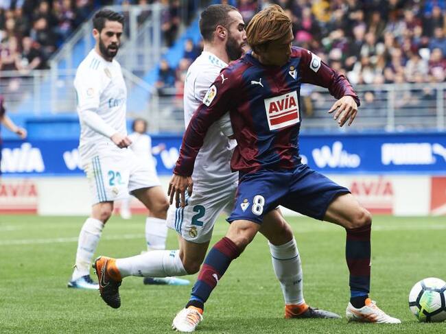 Inui protege un balón ante la presión del jugador del Real Madrid, Carvajal / Juan Manuel Serrano Arce (Getty Images)