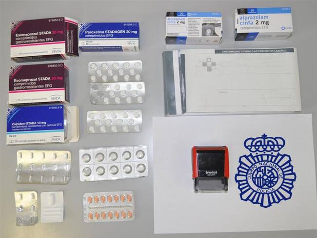 Una vez localizada esta doctora los agentes procedieron a su detención encontrando tanto el sello como lo que quedaba del talonario de recetas utilizado para prescribir medicamentos de forma fraudulenta. Por lo general las recetas eran para tranquilizantes, ansiolíticos y antidepresivos.