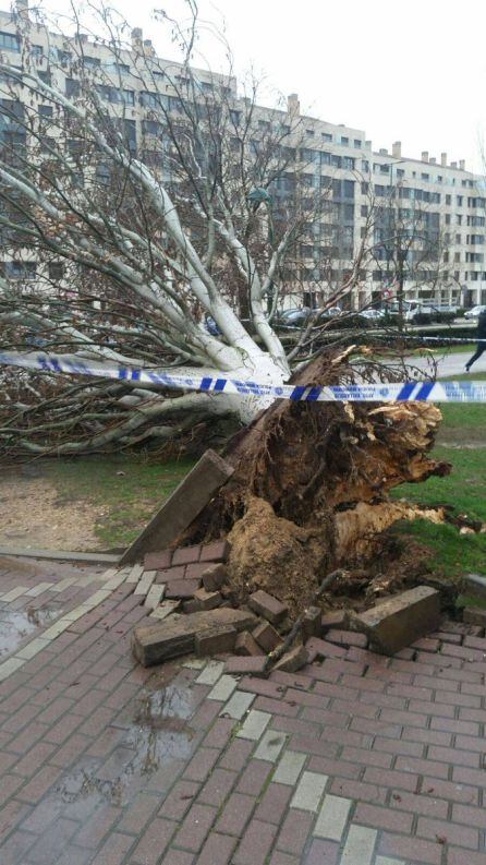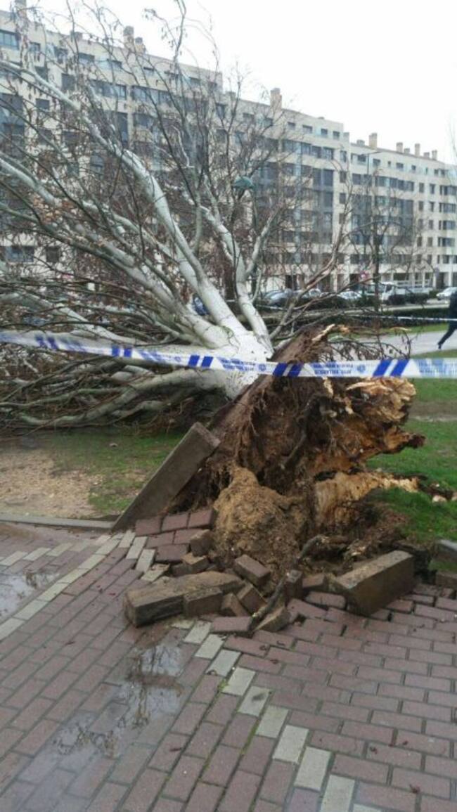 Lo cierto es que la caída del árbol es una de las consecuencias del temporal de viento y lluvia que está afectando a la ciudad.