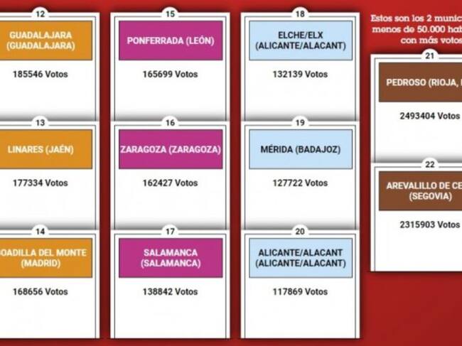 Una vez cerrada la votación y tras más de casi 16 millones de votos contabilizados, la ciudad logró clasificarse en el puesto número quince con 165.699 votos por detrás de Boadilla del Monte, Linares, Guadalajara, Logroño, Mijas, Paterna, Torrejón de Ardóz, Cartagena, Utrera, Elda, San Fernando, Alcorcón, Alcobendas y Estepona. Tras ella se clasificaron Zaragoza, Salamanca, Elche, Mérida, Alicante, Pedroso y Arevalillo de Cega.