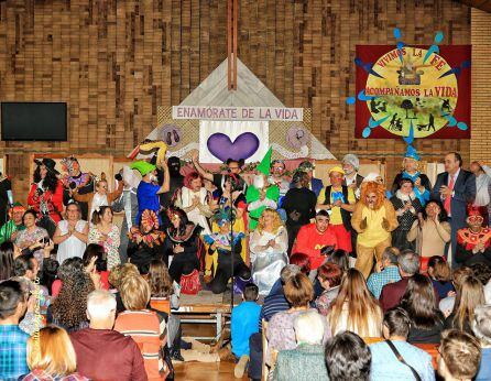 Y ya por la tarde, la iglesia de San Antonio se quedó pequeña para albergar a los centenares de espectadores que quisieron asistir a un divertido Festival de Teatro Solidario. Los adolescentes con sus monólogos, los niños con una historia de fútbol intergaláctico, los preadolescentes con una fábula africana y los adultos con una vistosa, divertida e irónica visión, plagada de guiños a la actualidad, de clásicos de Walt Disney, compusieron una velada que hizo las delicias del público asistente. Un nuevo éxito de la comunidad parroquial de San Antonio liderada por dos sacerdotes que hacen barrio: Antonio y Pedro.