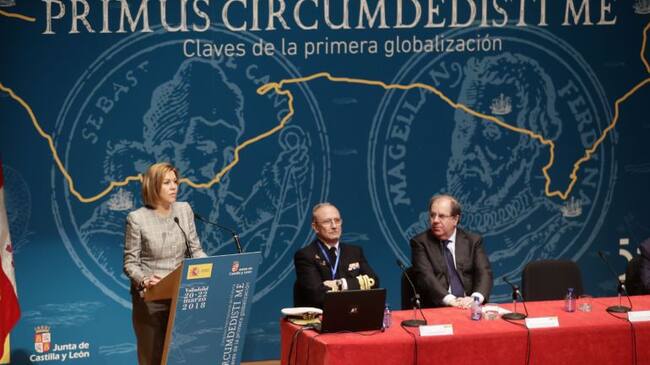 La ministra de Defensa, Dolores de Cospedal, inauguraba el Congreso Internacional que conmemora el V Centenario de la primera vuelta al mundo en busca de la ruta de las especias. "Toda una gesta en la que Valladolid tuvo un papel relevante" al auspiciar la firma de los contratos que permitieron costear el viaje, segun destacaba la ministra.