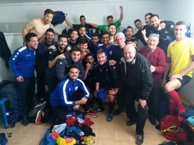 El vestuario del Elda Industrial celebró el triunfo en Orihuela / Cadena SER