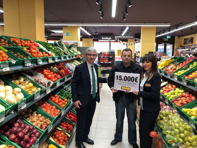 Cliente habitual del supermercado Gadis de Valencia de don Juan, la fidelidad de Luis Antonio Crespo Ronda ha acabado teniendo premio. Este vecino de Fuentes de Carbajal ha sido uno de los dos agraciados con un sueldo de 15.000 euros, el premio del último concurso que la cadena gallega puso en marcha entre los clientes de todos sus establecimientos. El otro talón en juego ha ido a parar a la localidad coruñesa de Elviña.