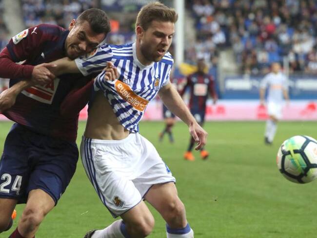 Jordan e Illarramendi pelean por un balón en el partido de Ipurua / Javier Etxezarreta (EFE)