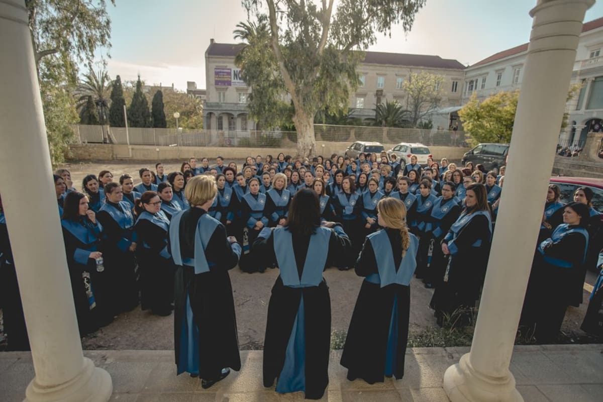 Concentración en el rectorado de la Politécnica de la Agrupación de Portapasos de las Santas Mujeres.