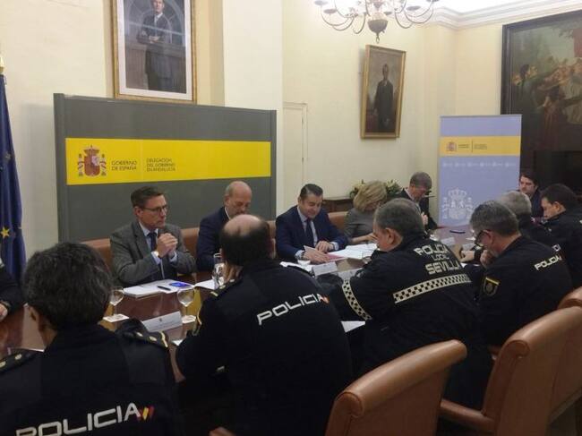 El delegado de Gobierno en Andalucía, Antonio Sanz, ha presidido este lunes la reunión de coordinación de seguridad, que se ha celebrado en la Delegación acompañado por el subdelegado, Ricardo Gil Toresano, y que ha contado con la asistencia del comisario provincial de la Policía Nacional, Andrés Garrido, y representantes de la Policía Local, Unidad Adscrita, así como miembros del Sevilla Fútbol Club y del 061, según ha informado la Delegación del Gobierno en un comunicado.
