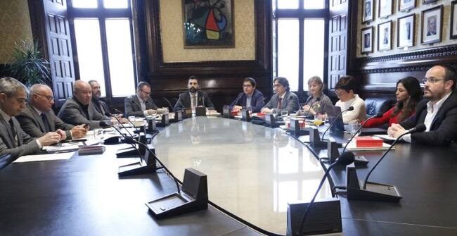 El president del Parlament, Roger Torrent, amb la resta de membres, a la reunió de la Mesa del 3 d'abril de 2018 / Rafa Garrido (ACN)