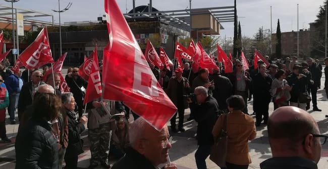 Esta mañana Comisiones Obreras y UGT han convocado una concentración esta mañana en la plaza Mayor, frente al ayuntamiento de Alcobendas, para reclamar una subida digna de las pensiones, mayor a la del 0,25% planteada por el Gobierno central. Alrededor de cien personas han acudido hasta este punto para defender el sistema público de pensiones.