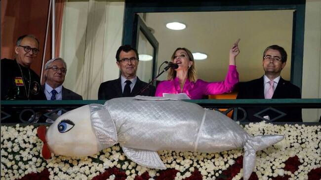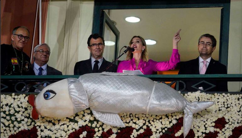 Ante miles de personas, la diseñadora murciana Alicia Hernández, que encarna a Doña Sardina 2018, leyó desde el balcón del Ayuntamiento sus últimas voluntades antes de que se queme la sardina este sábado por la noche.