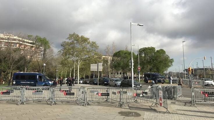 La policia catalana ha blindat a primera hora del matí els voltants de l'Auditori, on han instal·lat tanques i furgons antiavalots per impedir que els manifestants puguin acostar-se al rei.