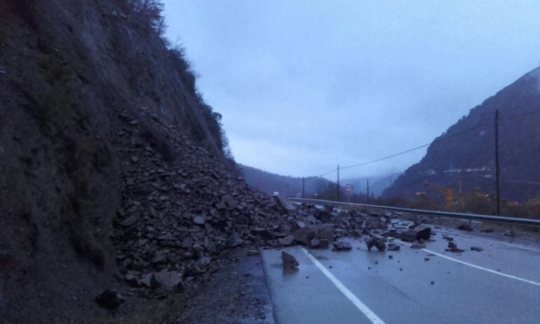 Ahora, los operarios se afanan en retirar el material que todavía permanece sobre el asfalto antes de colocar la malla de seguridad prevista para evitar nuevos desprendimientos.