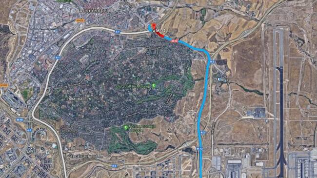 En su trazado, la M-12 da además acceso al área de servicio de Valdebebas, a la R-2 – también rescatada por Fomento – o la M-50 hacia la urbanización La Moraleja.
