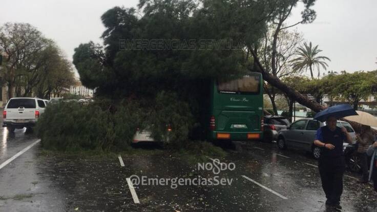 Las fuertes rachas de viento que han atravesado Sevilla de cuatro a cinco de la tarde han dejado más de 50 incidencias, la mayoría relacionadas con caídas de árboles y ramas. Uno de los árboles ha caído sobre la calzada en el Paseo Colón, una de las arterias de entrada y salida de la capital, y el tráfico ha tenido que desviarse.