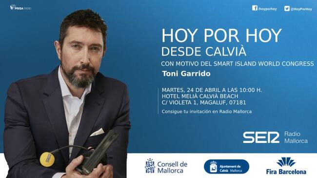 El martes 24 de abril Toni Garrido y todo su equipo se trasladarán a Calvià, en el hotel Melià Calvià BEACH, para realizar un programa especial en directo, con motivo de la celebración de la segunda edición del Smart Island World Congress.