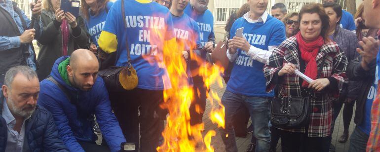 La protesta de los funcionarios de Justicia hoy ha tenido carácter simbólico: la quema de sus nóminas en plena plaza de la antigua Audiencia, en Capitán Juan Varela.