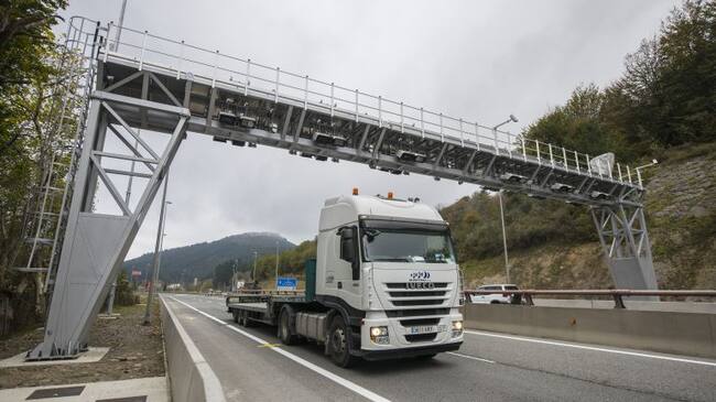 Vista de uno de los arcos de la N-1 que identifica a los camiones que atraviesan Gipuzkoa para el cobro de los peajes exclusivos para transportistas. / DIPUTACIÓN