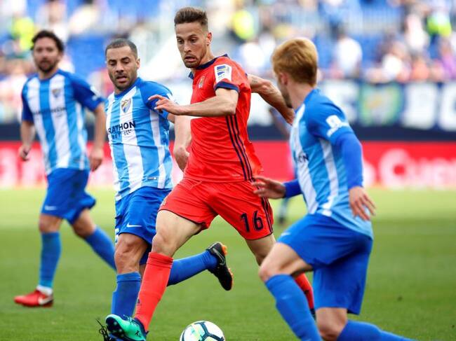 Canales intenta regatear al jugador del Málaga, Keko Gontán / Carlos Diaz (EFE)