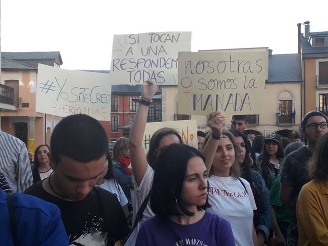 Indignados y enfadados por una sentencia que consideran injustificable en estos tiempos. Así se mostraron los más de 500 ciudadanos que este jueves participaron en la concentración convocada por el colectivo 8 de Marzo Bierzo y Laciana en la plaza del ayuntamiento de Ponferrada. Nadie parece comprender por qué los 5 miembros de ‘La Manada’ reciben una condena tan baja, apenas 9 años, y sobre por qué se califica como abuso sexual lo que para la sociedad es tanto agresión como violación.