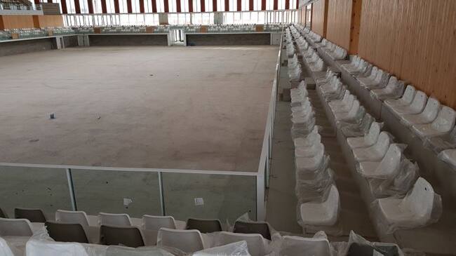 Pla general de l'estat de l'interior del Palau d'Esports Catalunya, a l'Anella Mediterrània de Campclar al febrer. / ACN