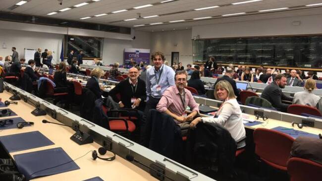 La delegación fuenlabreña en el día en que la UE seleccionó el programa de esta ciudad para ser subvencionado. / Facebook Javier Ayala