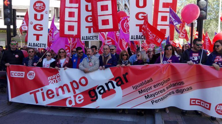 Unas 2.000 personas según los convocantes y unas 1.100 según la Policía han participado en la mañana de este martes en la manifestación del 1 de mayo en Albacete.