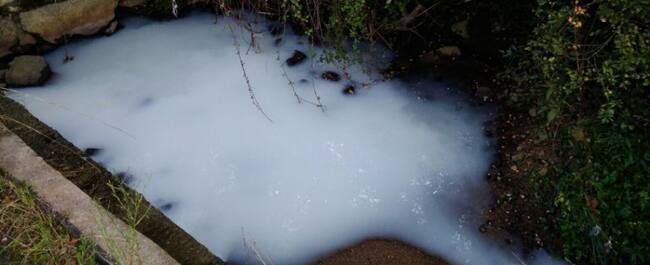 La policía local detectó aguas espumosas y de color blanquecino