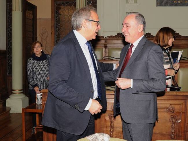 El portavoz del PP conversa con el concejal de Hacienda antes de una sesión plenaria / Ayuntamiento Valladolid