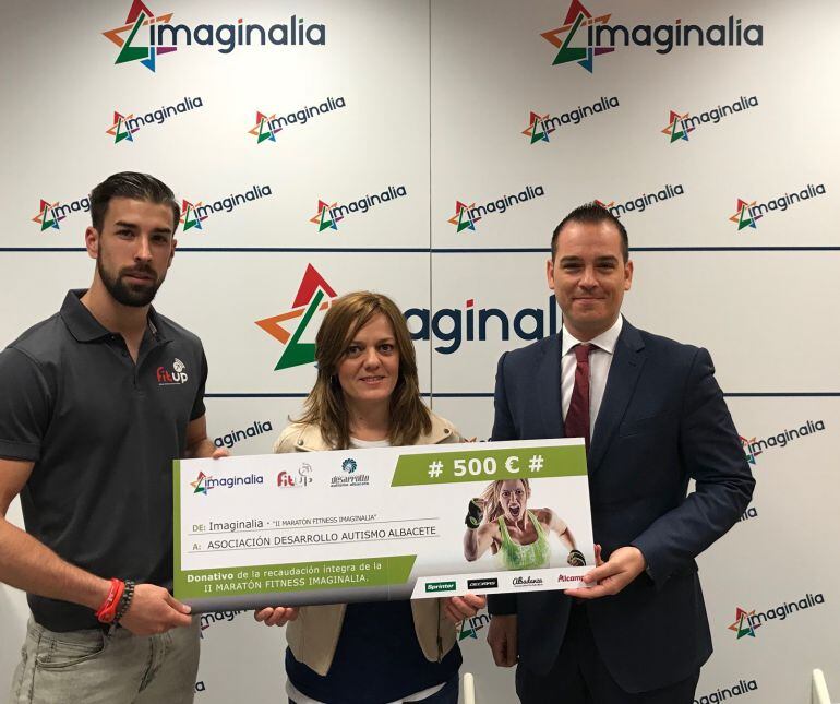 El éxito de la II edición de la Maratón Fitness de Imaginalia, celebrado el pasado 21 de abril en las instalaciones del Centro Comercial, se ha traducido en un donativo de 500 € que el Gerente Javier Martínez, entregó ayer a Cande Hernández Tárraga como representante de la Junta Directiva de la Asociación Desarrollo Autismo Albacete. En dicho acto también estuvo presente el director del gimnasio FitUp, Jesús Villena, que fue parte activa de esta acción solidaria.