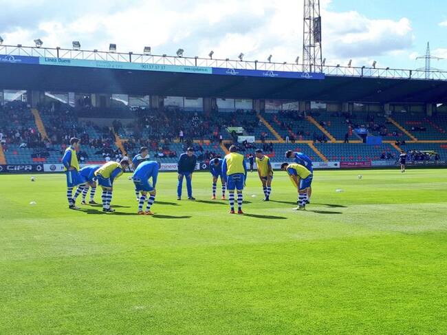 El equipo blanquiazul durante el calentamiento sobre el césped de El Helmántico. / Cadena SER