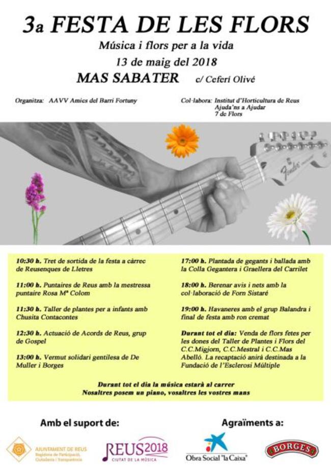 Mas Sabater acull aquest 13 de maig la 3era Festa de les Flors. Aquest any les activitats s'encaminaran a recaptar dines per la Fundació d'Esclerosi Múltiple a Reus.
